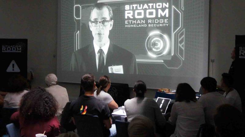 Situation Room is a highly engaging themed business game. Teams guide by a series of video briefs open a series of locked brief cases to uncover challenges and resources to solve a Special Operations investigation into a crime syndicate.